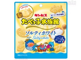 ・「たべっ子水族館 ソルティホワイト」は2026年2月16日に全国のコンビニ限定で販売された新種。ホワイトチョコがしみ込んだ本体に、宮古島産の塩が加わり甘じょっばい味。卵不使用でカルシウム入り。 |