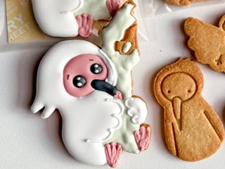 ・2025年5月24日、羽咋郡宝達志水町にある町民センター「アステラス」で行われたワークショップ「トキアイシングと卵クッキー作り体験」で販売された。首から上のトキの姿とトキの卵を模したクッキーを制作体験。 |