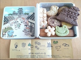 ・「雷鳥クッキー」は城下町松本で有名な松本城・繩手通り・中町通りをイメージしたクッキー缶「松本城下町クッキー缶」に詰められたクッキーのひとつ。缶に詰められているのは松本城・カエル・ライチョウなどをモチーフにしたクッキー。 |