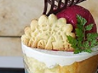 期間限定メニューの孔雀パフェ。 |