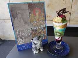 ・販売元は京都市東山区にある「京都国立博物館」南門に併設されるコーヒーチェーン店。2025年9月20日~11月16日に行われる特別展「宋元仏画-蒼海を越えたほとけたち」の開催期間に期間限定で提供されるメニュー「孔雀パフェ」の上に鎮座している。孔雀パフェは光背アイスを負う美しい姿の孔雀クッキーの下にカシスアイスとヨーグルトの酸味でサッパリとした味わい。 |