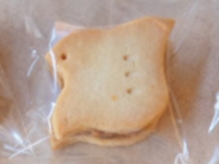 ・「きな粉とレーズン」はレーズンが入ったクリームをきな粉味の米粉サブレをサンドしたもの。2024年2月に限定販売したクッキー缶「クッキーとりさん便」に詰められた。 |