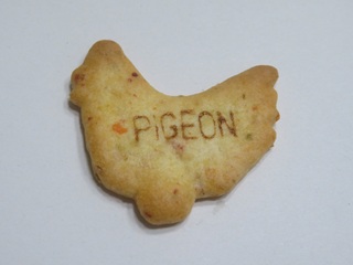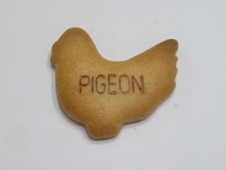 ・「ハトのクッキー」の基本形は羽の色がピンクだが、亜種として羽の色違いの10種類(白・黒・青・水色・緑・黄・紫・茶・黄土色・こげ茶)や、体全体が茶褐色となった「ココア風味のハトクッキー」、頭部や背の部分が青色になった「青い鳥クッキー」が確認されている。 |