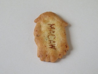 ・「おちりクッキー」で現在確認できるのはオカメ、セキセイ、コザクラ、モモイロ、ウロコ、ヨウムのインコ6種と桜文鳥、白文鳥の2種。糞型のクッキーが一緒についてくる。 |