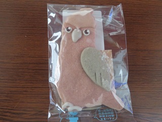 ・「小鳥のサブレクッキー」はそれぞれ歯ざわり良い一口サブレに鳥の顔をアイシングしたもの。現在確認できる種類はオカメ・シロハラ・モモイロ・セキセイのインコ4種とブンチョウ・ハシビロコウの2種。サブレは塩バター味。 |