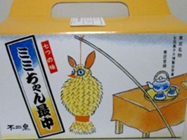 ・「ミミちゃん最中」は全国菓子大博覧会で受賞した地元の銘菓。雑司ヶ谷の郷土玩具「すすきみみずく」をモチーフとした7つの餡(あずき小倉あん・あずきこしあん・あずきごまあん・栗あん・くるみあん・紅梅あん・抹茶あん)の一口最中が1個ずつ入ったボックス売りをしていた。 |