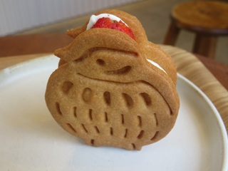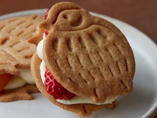 ・「フレッシュバターサンド」は全粒粉ときび砂糖を使ったクッキーで、ホワイトチョコでコクをプラスしたバタークリームと季節のフルーツをサンドしたもの。常温商品ではない。季節のフルーツは旬の時期に合わせて登場し、1~2ヶ月の間時期限定で販売される。びわは九州産を使用、4~5月に販売された。