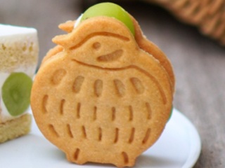 ・クッキーの形は「ふくら雀」。日本では福を呼ぶ縁起物として扱われ、「福来雀」「福良雀」とも表記される。