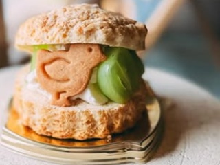 ・「ことりサブレ」は発酵バターを使用したプレーンサブレで、アーモンドジャンドゥジャをサンド。シリーズの基本形となることりサブレは夏季に溶けやすいためサブレ生地やチョコの状態を変えて「ことりサブレ 夏バージョン」として販売している。 |