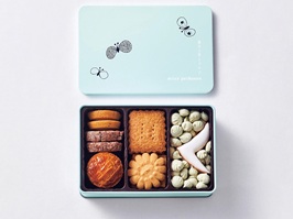 ・布や雑貨販売「チェック&ストライプ」とのコラボクッキー缶「チェック&ストライプカンカン2025夏」には鳥のほろほろピスタチオクッキーや鳥のほろほろカカオクッキーを含む新作クッキー5種が詰められていた。 |