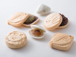 ・「船橋三番瀬最中」は東京湾北部の好漁場「三番瀬」でみられる魚介類や鳥を模した最中。種類はアサリ(白あん)・カレイ(こしあん)・みやこ鳥(小倉あん)・磯のカニ(海苔クッキー)の4種類。船橋市が推奨する地元産品ブランド「ふなばしセレクション」には2019年度に認証。 |