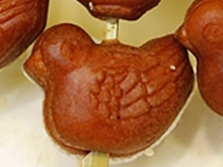 ・浅草仲見世通りにある菓子店で売られる鳩型の人形焼。