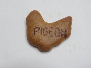 ・「ハトのクッキー」の基本形は羽の色がピンクだが、亜種として羽の色違いの10種類(白・黒・青・水色・緑・黄・紫・茶・黄土色・こげ茶)や、体全体が茶褐色となった「ココア風味のハトクッキー」、頭部や背の部分が青色になった「青い鳥クッキー」が確認されている。 |